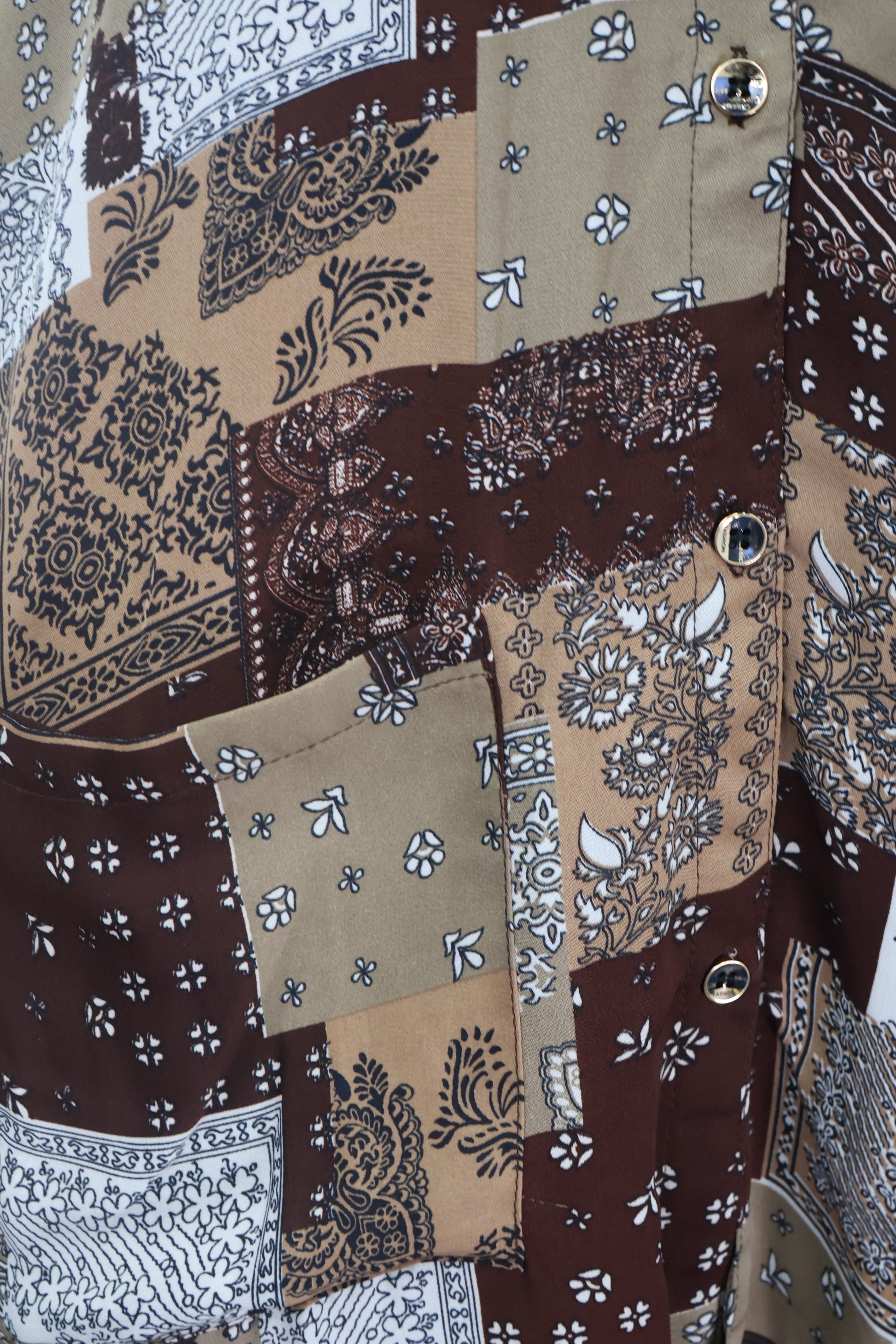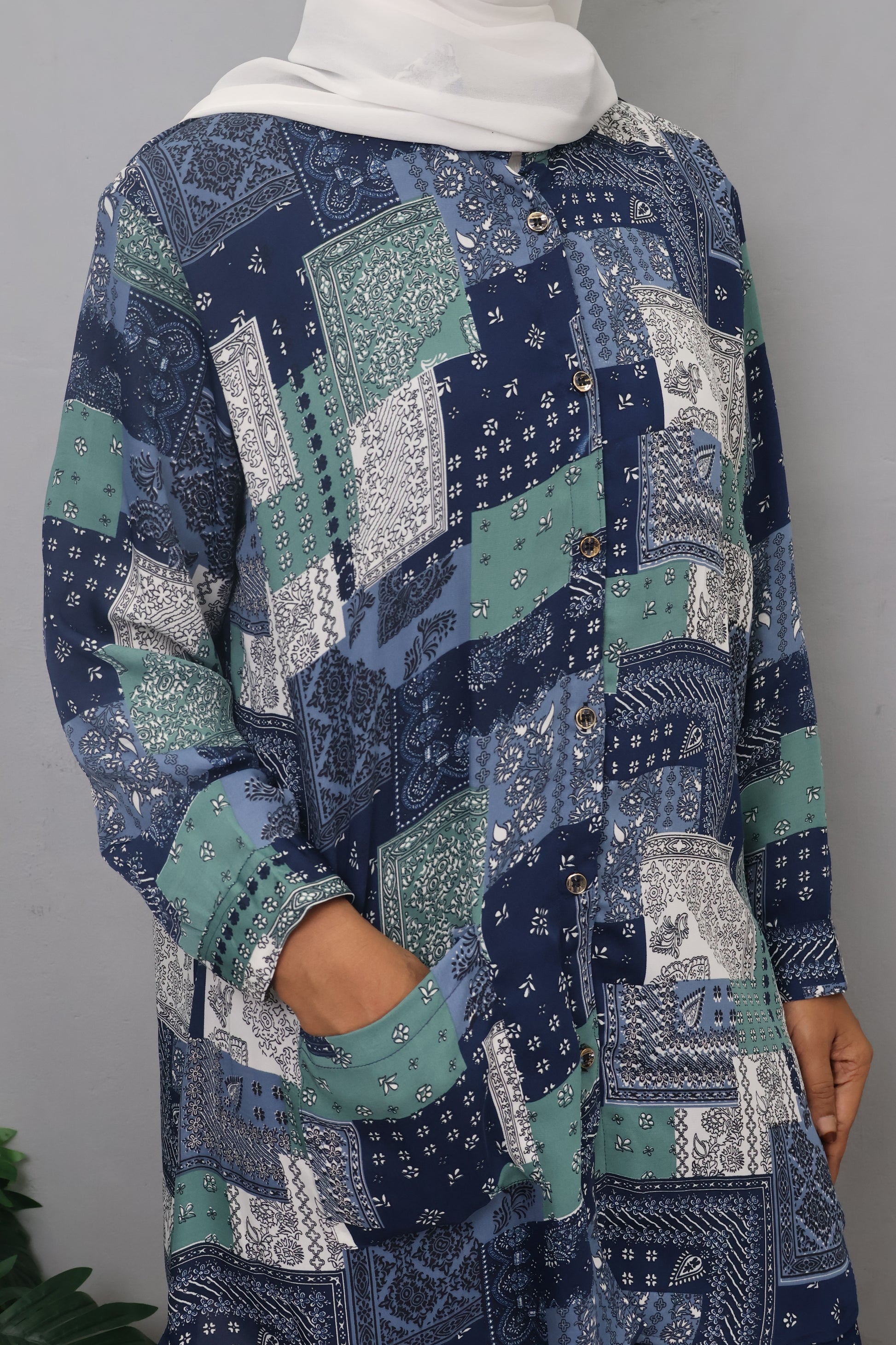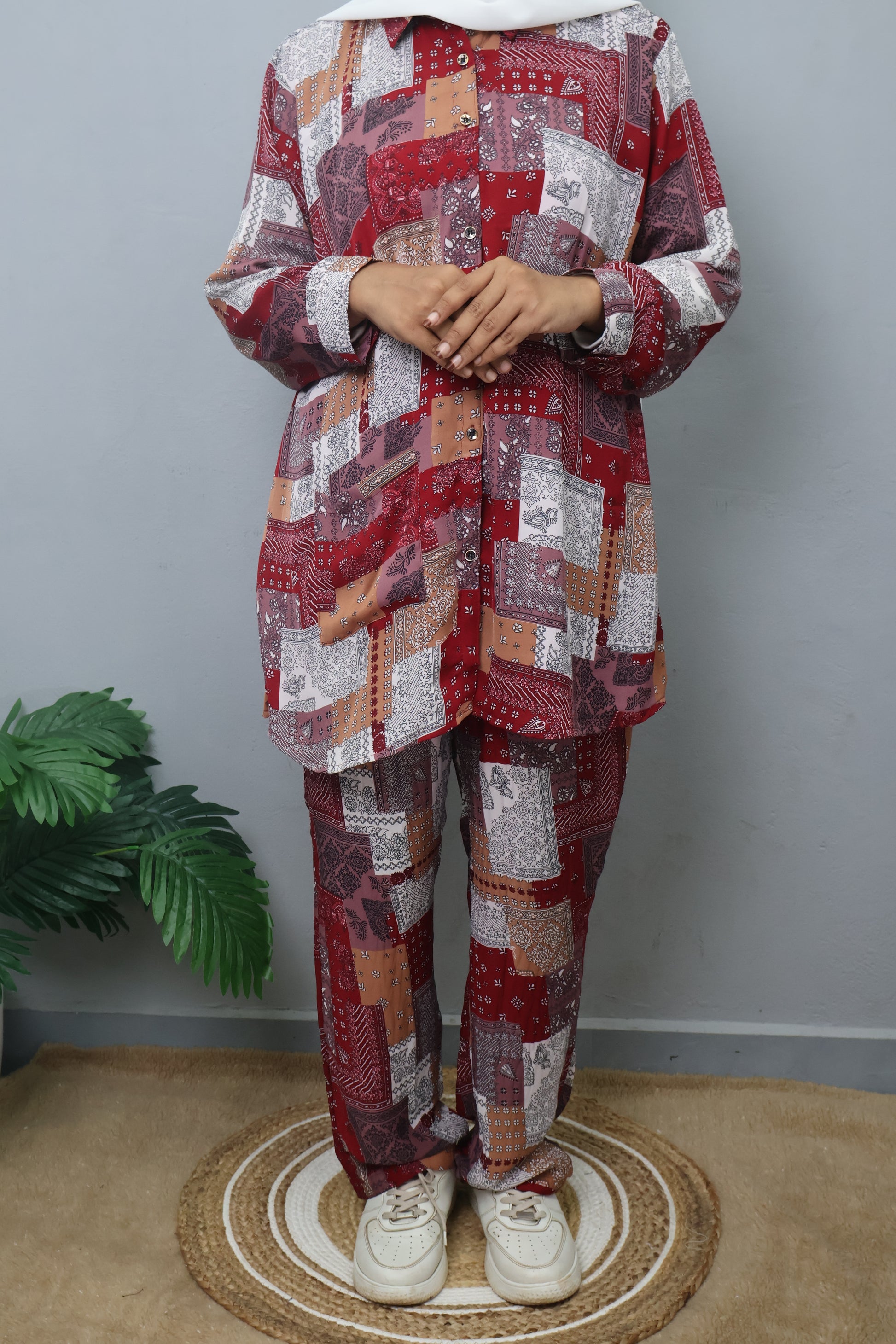 A trendy indigo patchwork co-ord set featuring a button-down long top paired with straight-fit pants. Designed with a relaxed silhouette and a mix of blue and green tones, this outfit brings together comfort and style effortlessly. Perfect for casual days, travel wear, or laid-back gatherings — combining artistic prints with easy elegance.