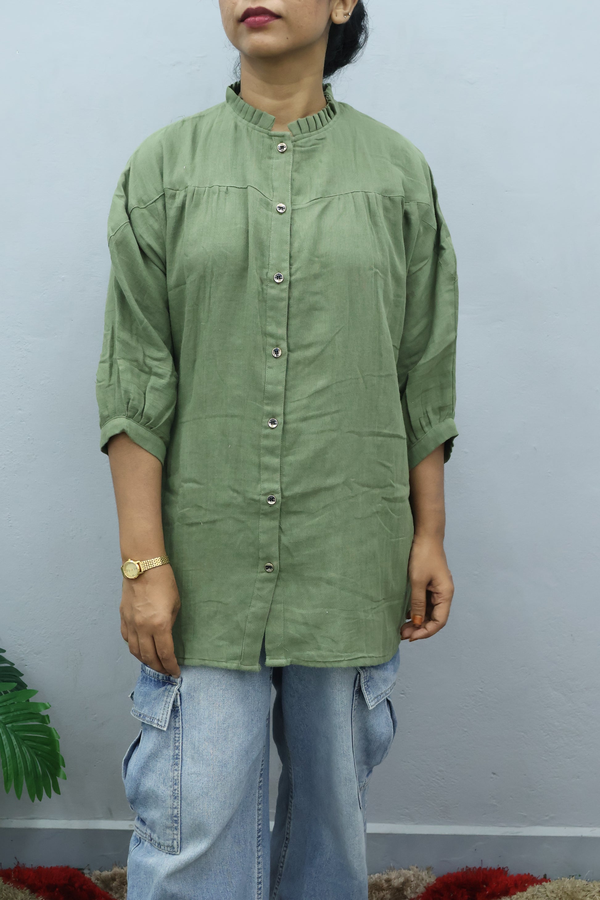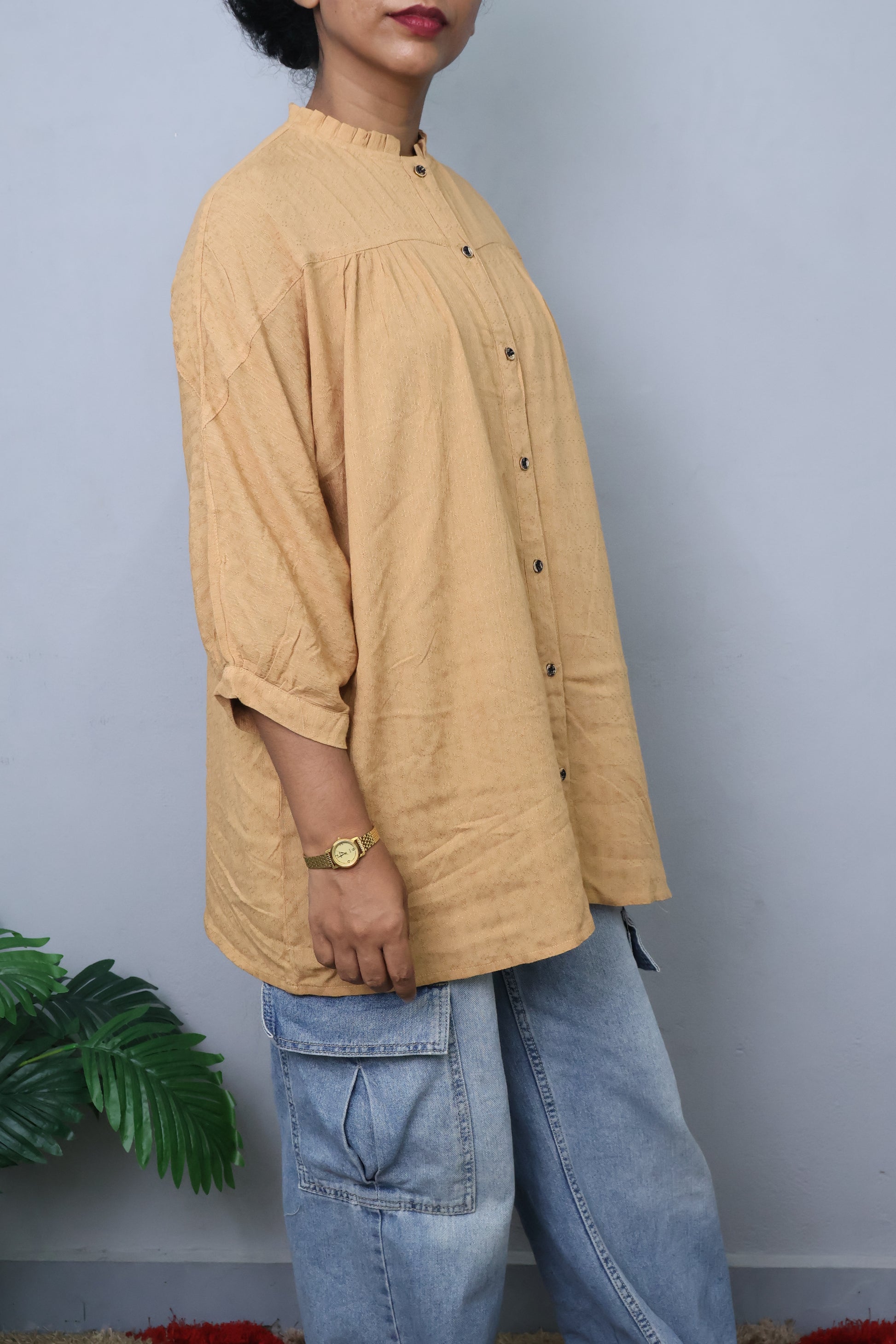 A relaxed button-down shirt designed for everyday comfort and effortless style. With its soft textured fabric and loose fit, this piece pairs perfectly with jeans or trousers for a laid-back, chic look. Ideal for casual wear or weekend outings.