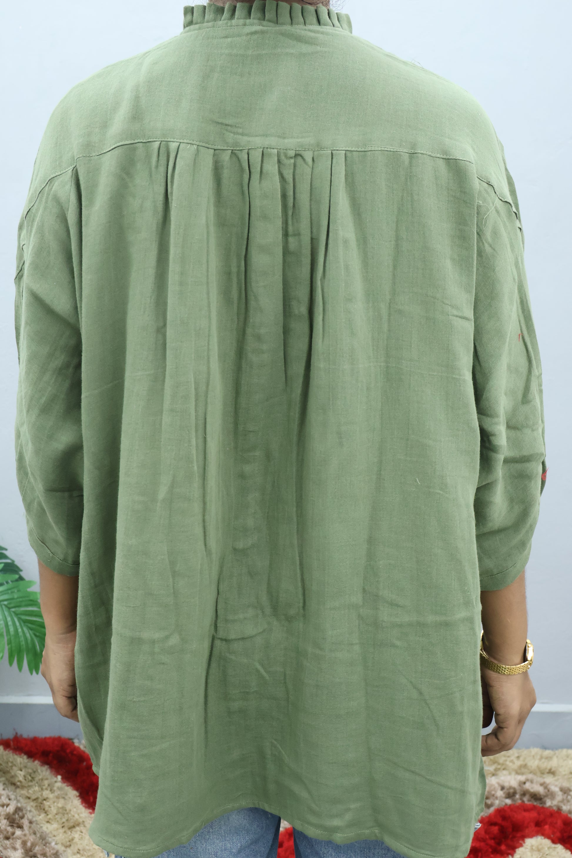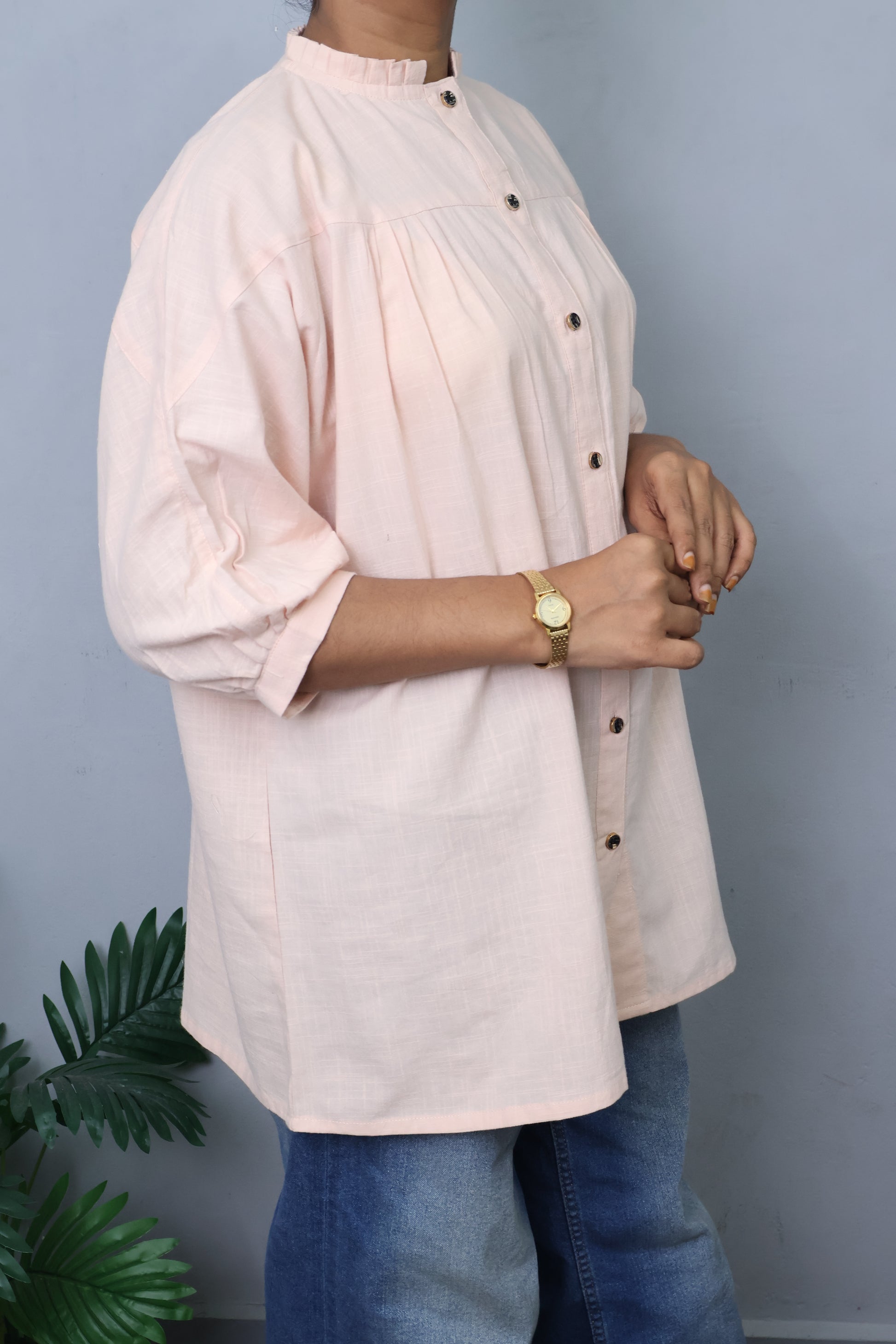 Sleeve Style: Drop shoulder half sleeves